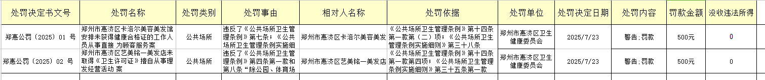 惠济区卫生健康委员会行政处罚案件信息公开表(2025年7月30号)