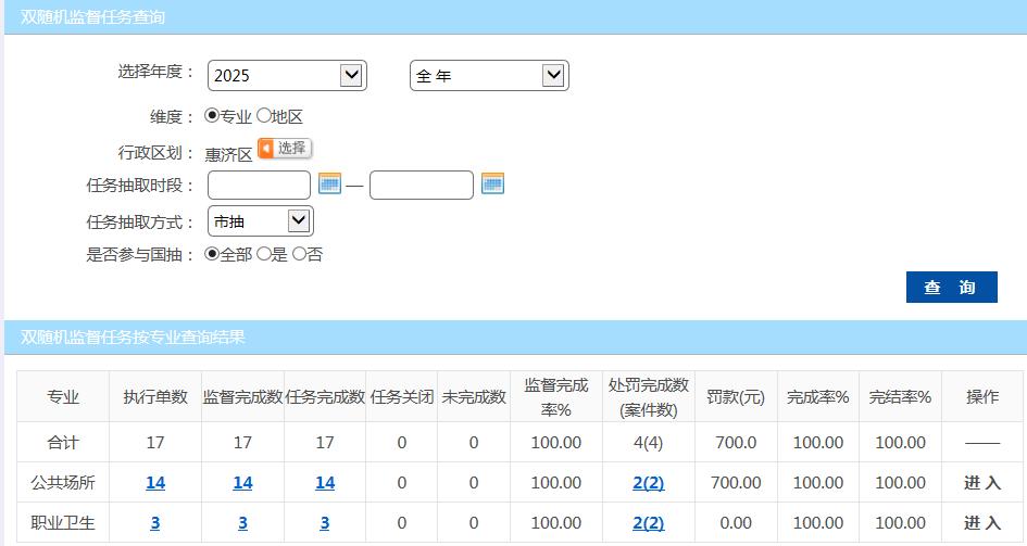 惠济区卫生监督所2025年市抽双随机公示